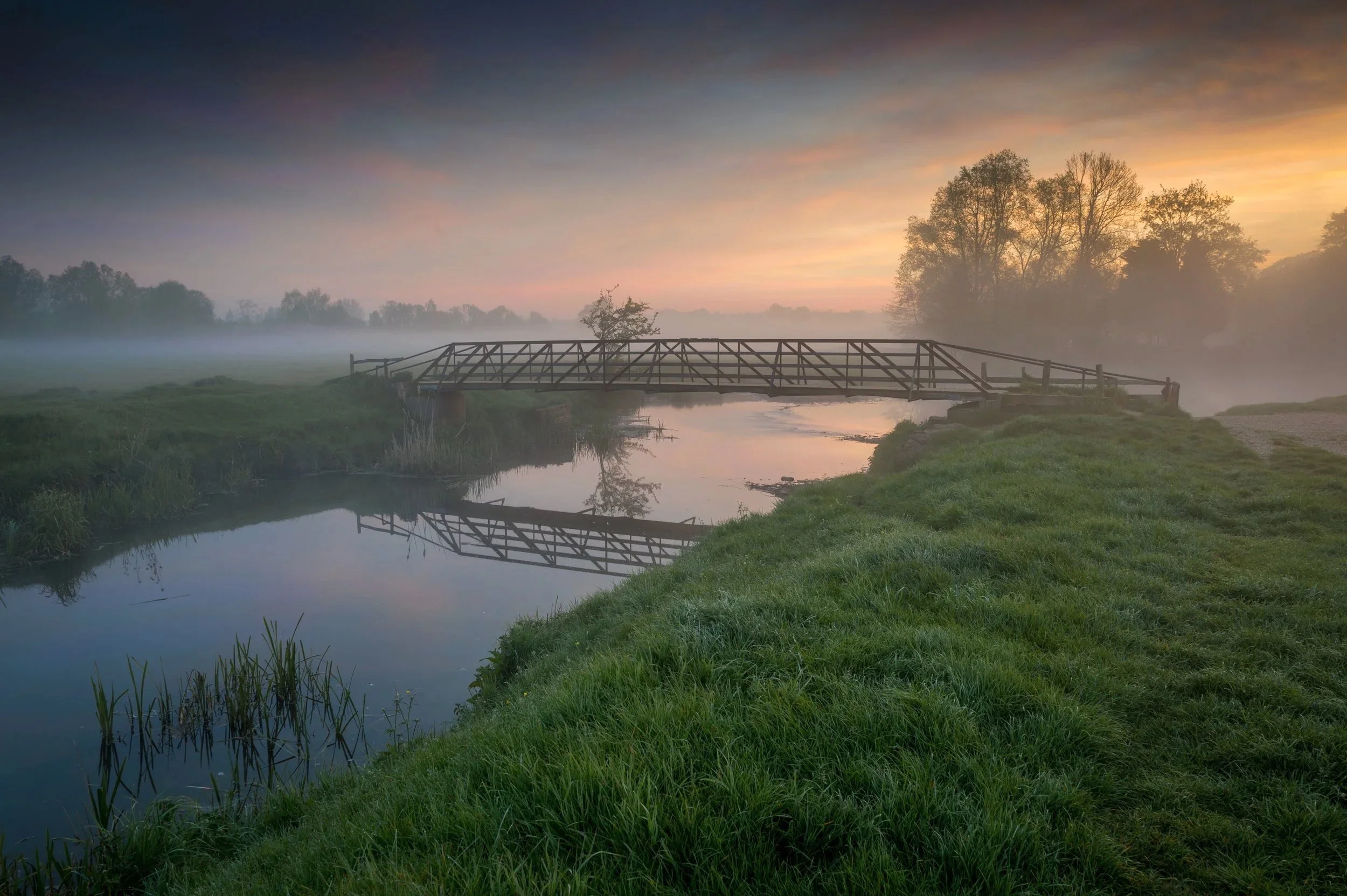 Positioning yourself so the light falls across your subject, rather than behind it, can often reveal tone and depth without overpowering the scene. I find reflections are at their most expressive at this time of day, especially in the morning mist, as it lingers along the water channels.
